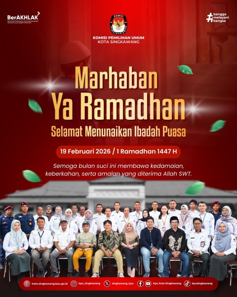 #TemanPemilih, Marhaban Ya Ramadhan. Segenap Keluarga Besar Komisi Pemilihan Umum Kota Singkawang mengucapkan Selamat menunaikan ibadah puasa Ramadhan 1447 H. Semoga bulan suci ini membawa kedamaian, keberkahan, serta memperkuat nilai kesabaran, keikhlasan, dan kepedulian dalam kehidupan bermasyarakat. Semangat Ramadan kiranya semakin mempererat persaudaraan dan harmoni dalam keberagaman di Kota Singkawang. #KPUMelayani #KPUKotaSingkawang ....