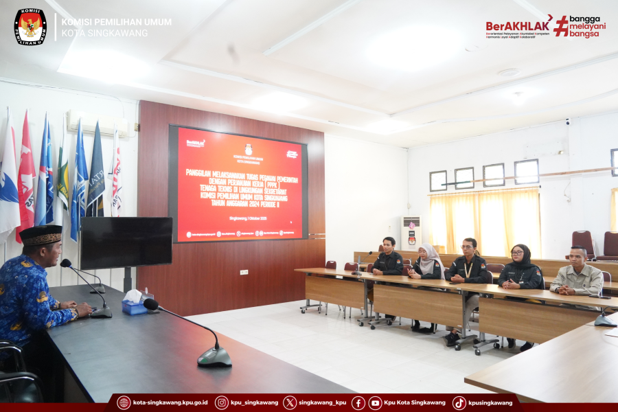 #TemanPemilih, bertempat di Aula KPU Kota Singkawang pada Rabu (01/10/2025), Sekretaris KPU Kota Singkawang memberikan arahan langsung kepada Pegawai Pemerintah dengan Perjanjian Kerja (PPPK) Tenaga Teknis yang mulai melaksanakan tugas berdasarkan hasil seleksi PPPK Tahun Anggaran 2024 Periode II.