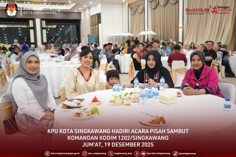 #TemanPemilih, Anggota KPU Kota Singkawang Ayu Gintari menghadiri acara Pisah Sambut Komandan Kodim 1202/Singkawang dari Letkol Arm Ferdy Pongsamma R.S.H. kepada Letkol Arh Muhammad Ivan Juniar, S.I.P., yang berlangsung pada Jum’at (19/12/2025) di Gedung Icon Convention Hall Singkawang.
