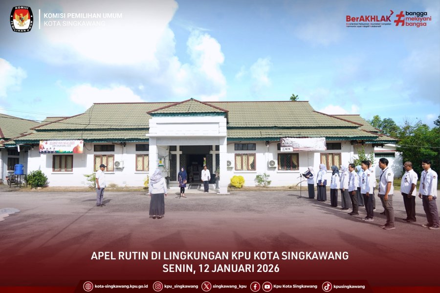 #TemanPemilih, Komisi Pemilihan Umum Kota Singkawang melaksanakan Apel Rutin pada Senin (12/01/2026) di Halaman Kantor KPU Singkawang.
